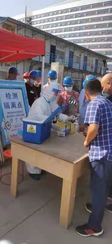 三是集中檢測,排查疫情風(fēng)險(xiǎn)。針對部分外地來淮務(wù)工人員核酸檢測難的問題,特邀人民醫(yī)院檢測中心到施工現(xiàn)場對40余名外來務(wù)工人員進(jìn)行集體核酸檢測。
