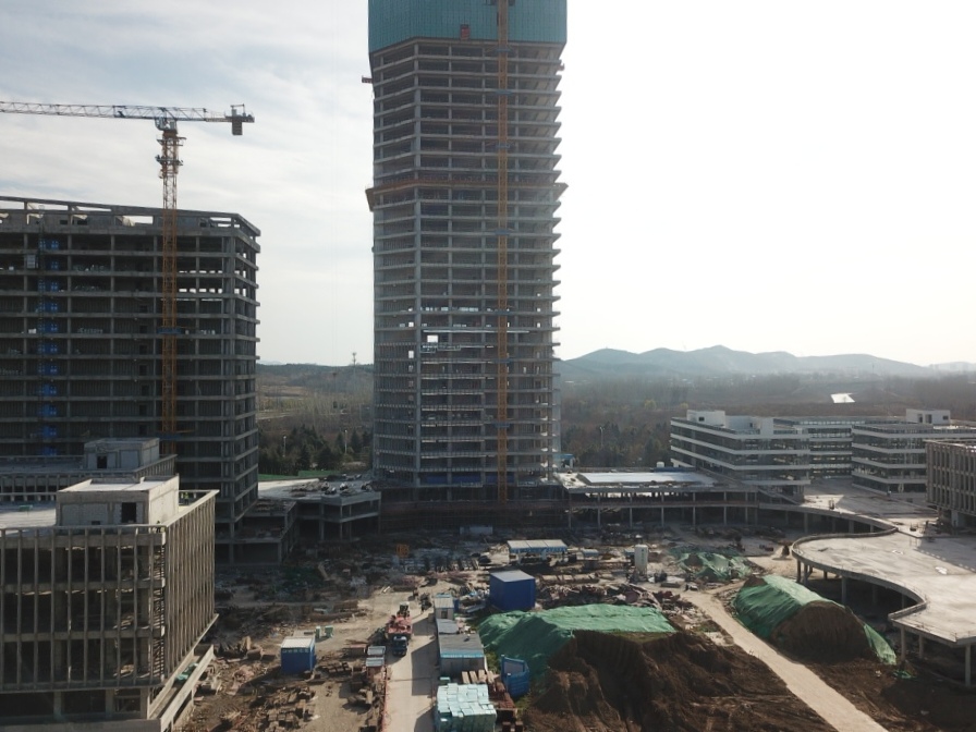 淮北第一高樓——商務(wù)政務(wù)中心采用框架核心筒結(jié)構(gòu),建筑面積超7萬平方米,設(shè)計(jì)復(fù)雜、施工難度大,地下室出正負(fù)零后以平均7天一層的速度向上生長(zhǎng),工程部副部長(zhǎng)張玉坤駐點(diǎn)管理,項(xiàng)目在做到質(zhì)量、安全雙優(yōu)的同時(shí),以不到一年的時(shí)間實(shí)現(xiàn)封頂,刷新淮北速度。項(xiàng)目不僅提前完成了年度節(jié)點(diǎn)目標(biāo),而且先后獲得2020年“安徽省建筑安全生產(chǎn)標(biāo)準(zhǔn)化工地”、“全國(guó)AAA安全文明標(biāo)準(zhǔn)化工地項(xiàng)目”的省級(jí)、國(guó)家級(jí)榮譽(yù),在全市范圍內(nèi)先后召開了兩次市住建局主辦的建筑質(zhì)量安全現(xiàn)場(chǎng)觀摩會(huì),下一步將爭(zhēng)創(chuàng)“黃山杯”及“國(guó)優(yōu)”工程,做到進(jìn)度、質(zhì)量?jī)刹徽`。目前南區(qū)各主樓結(jié)構(gòu)已全部封頂,二次結(jié)構(gòu)、安裝工程完成70%,即將進(jìn)入幕墻和裝飾裝修穿插施工階段。