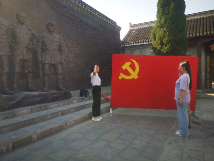黨員們面對淮海戰(zhàn)役英勇犧牲的戰(zhàn)士照片前駐足默哀,向革命先烈們敬禮!在總前委銅塑雕像前新黨員們莊嚴(yán)宣誓,老黨員重溫入黨初心!在黨的領(lǐng)導(dǎo)人題詞的烈士紀(jì)念碑前久久凝視,不忍離去!