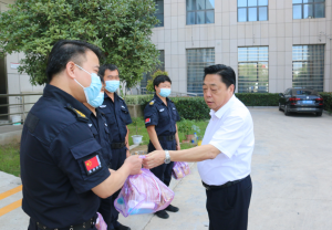 在送清涼活動中,保安公司一線職工無懼酷暑環(huán)境,堅(jiān)守在自己的工作崗位上,默默付出,盡職履責(zé)。周開宇對烈日下工作的職工給予了高度贊揚(yáng),將關(guān)愛送到大家的心坎上,并叮囑大家在做好疫情防控工作的同時做好防暑降溫工作,注意勞逸結(jié)合,確保各項(xiàng)工作的安全運(yùn)行。