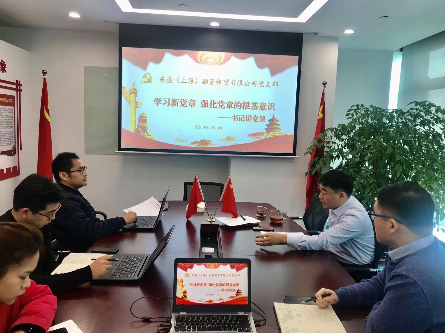 12月14日上午,東盛融資租賃公司黨支部在黨員活動室開展了以“學(xué)習(xí)新黨章,強化黨章的根基意識”為主題的黨課學(xué)習(xí)活動,由支部書記王智授課,全體黨員參加。