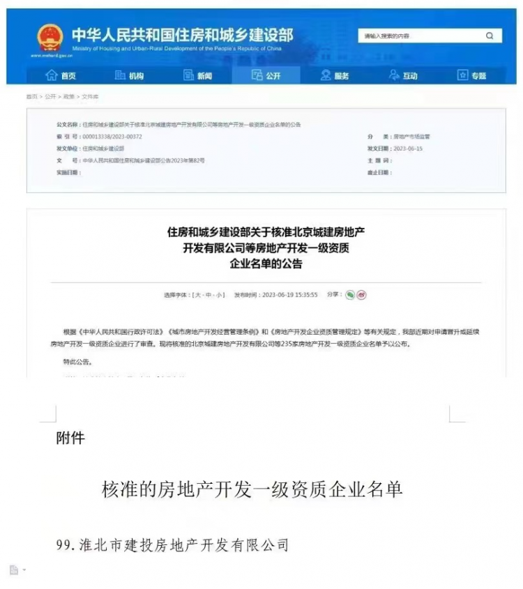 經(jīng)國家住建部核準(zhǔn),淮北建投控股集團(tuán)下屬全資子公司淮北市建投房地產(chǎn)開發(fā)有限公司獲批國家房地產(chǎn)開發(fā)一級資質(zhì)。