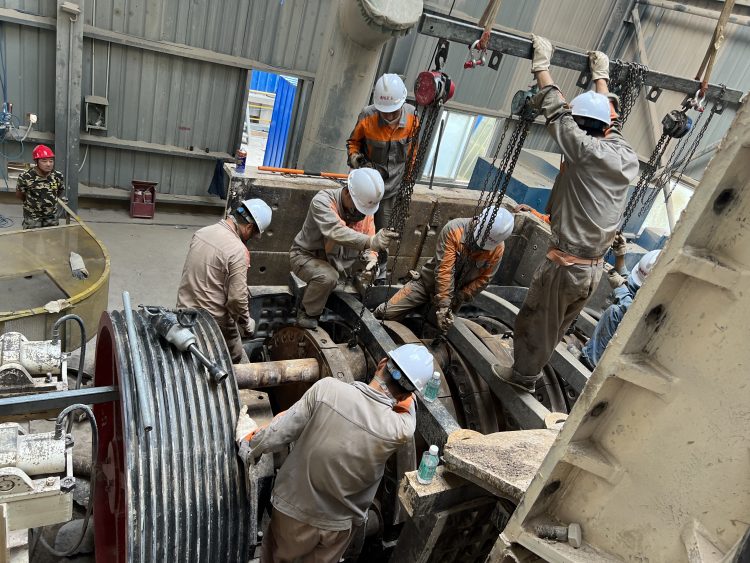 得知情況,機修班長及公司領導立即趕赴現場對故障設備進行了全面排查和分析,制定搶修計劃,對搶修過程進行詳細確認,安全注意事項進行強調后,立即下令拆機!