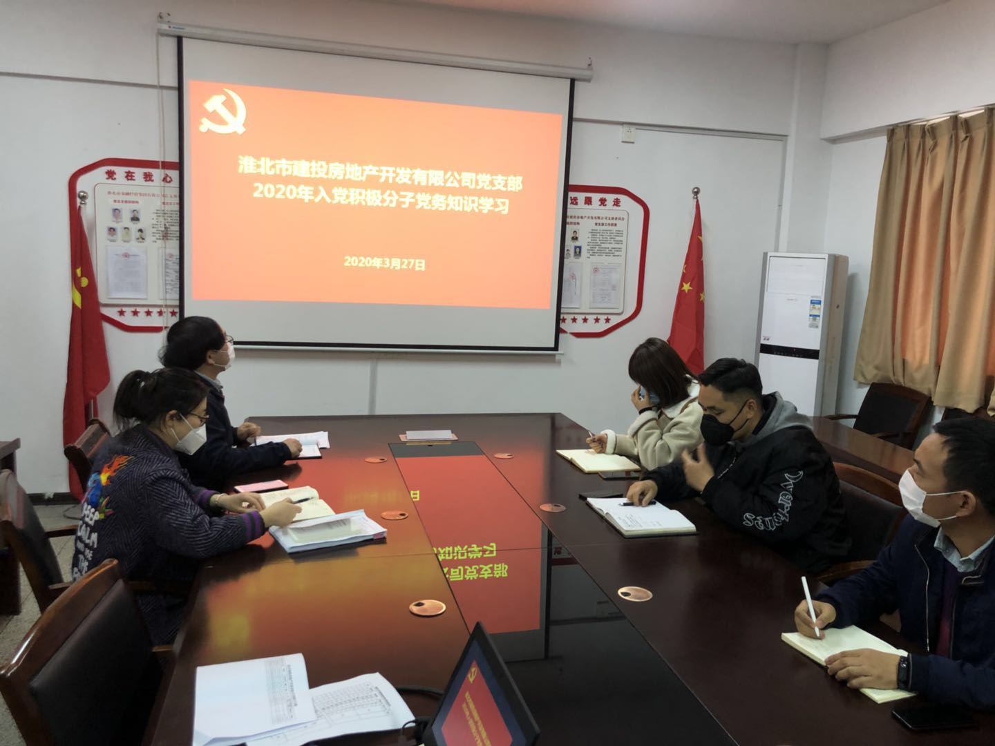 為貫徹黨員發(fā)展工作方針,提高入黨積極分子的思想政治素質,3月27日下午,房地產黨支部組織開展2020年入黨積極分子黨務知識培訓,來自黨支部的10名入黨積極分子、發(fā)展對象參加了學習培訓。