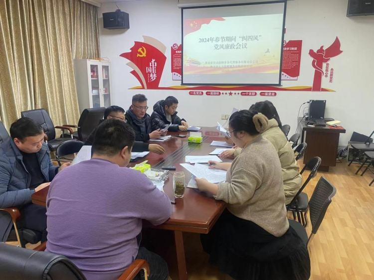 2024年春節(jié)將至,為貫徹落實(shí)《市建投集團(tuán)紀(jì)委關(guān)于做好2024年元旦春節(jié)期間糾“四風(fēng)”樹新風(fēng)工作的通知》文件精神,勞代公司黨支部召開了2024年春節(jié)前糾“四風(fēng)”黨風(fēng)廉政會(huì)議,全體黨員及公司員工參加了本次會(huì)議。
