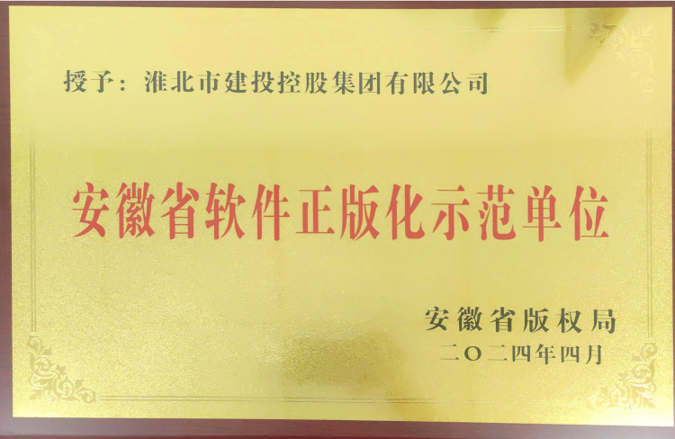 2024年4月2日安徽省版權局下發(fā)了《關于公布2023年度安徽省版權示范創(chuàng)建認定名單的通知》,認定淮北市建投控股集團有限公司等16家單位為“安徽省軟件正版化示范單位”。
