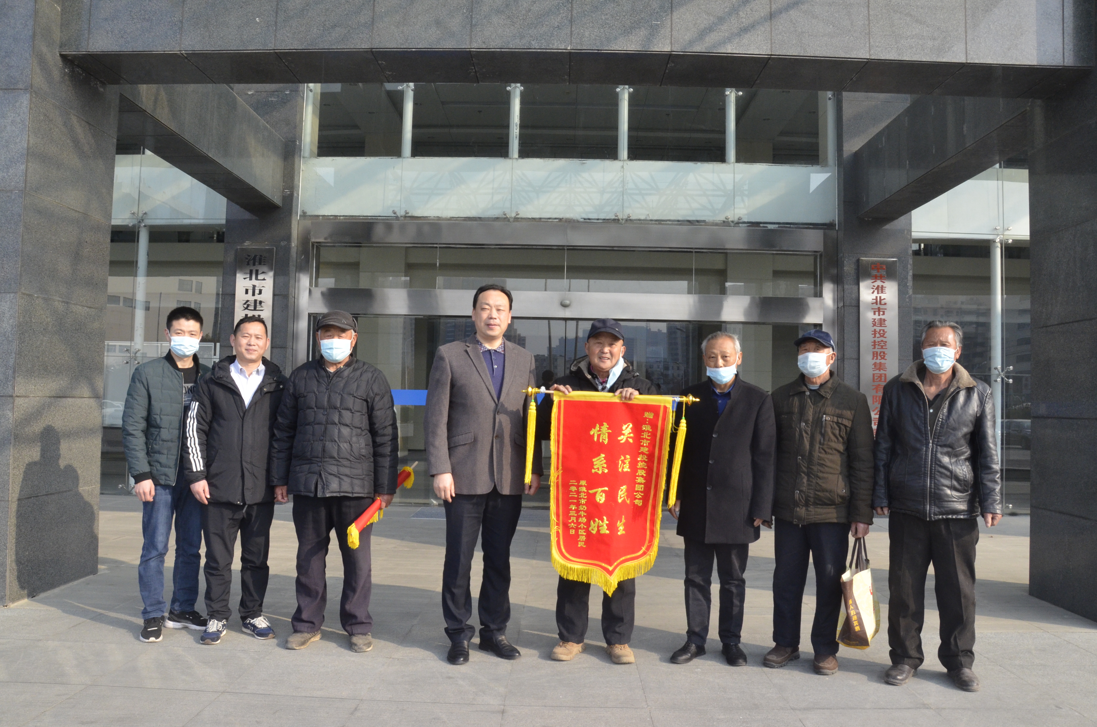 3月8日上午,原淮北奶牛場(chǎng)退休職工劉德亮、倪永林一行五人,懷著一顆感謝的心,來(lái)到集團(tuán)公司送上一面寫有“情系百姓·關(guān)注民生”的錦旗,感謝市建投集團(tuán)公司為原淮北市奶牛場(chǎng)居住區(qū)居民解決生活飲水問(wèn)題。