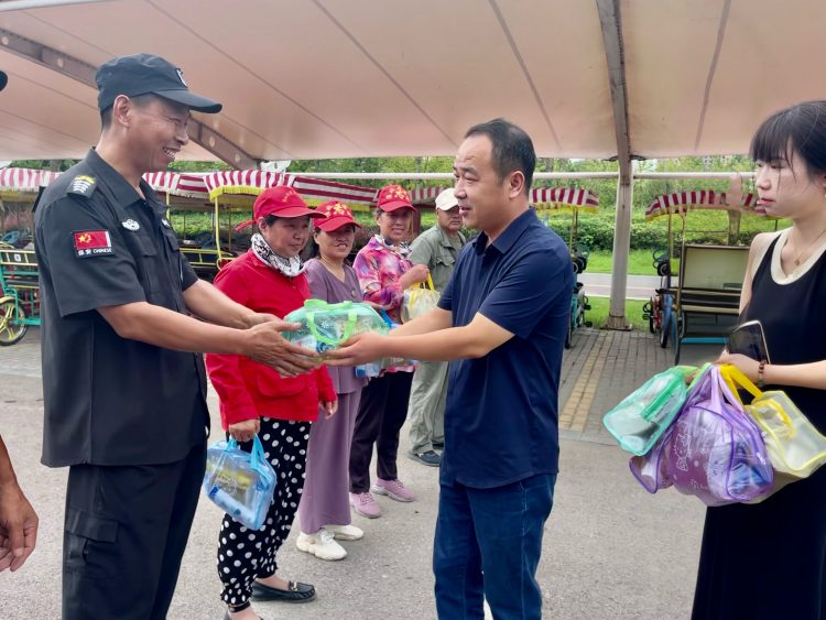 入夏以來,氣溫持續(xù)攀升,熱浪襲人,南湖公園工作人員堅(jiān)守崗位,冒酷暑、戰(zhàn)高溫,為切實(shí)做好防暑降溫工作,2024年8月1日上午,南湖公園組織開展“夏日送清涼”活動(dòng),集團(tuán)公司黨委委員、副總經(jīng)理、文旅集團(tuán)總經(jīng)理趙焱同志一行前往南湖公園,為在高溫下堅(jiān)持工作的員工們送去了清涼與問候。