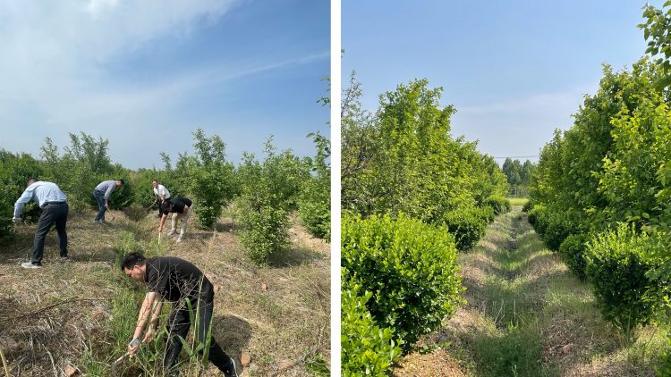 活動(dòng)現(xiàn)場,黨支部書記李振昊帶領(lǐng)全體黨員對綠金湖苗圃基地苗木開展日常養(yǎng)護(hù)工作。全體黨員干部分工協(xié)作、默契配合,有序完成除草除雜、修剪、澆灌等工作,使苗圃環(huán)境煥發(fā)新貌,以實(shí)際行動(dòng)詮釋黨員“勇于吃苦、樂于奉獻(xiàn)”的精神品質(zhì)。