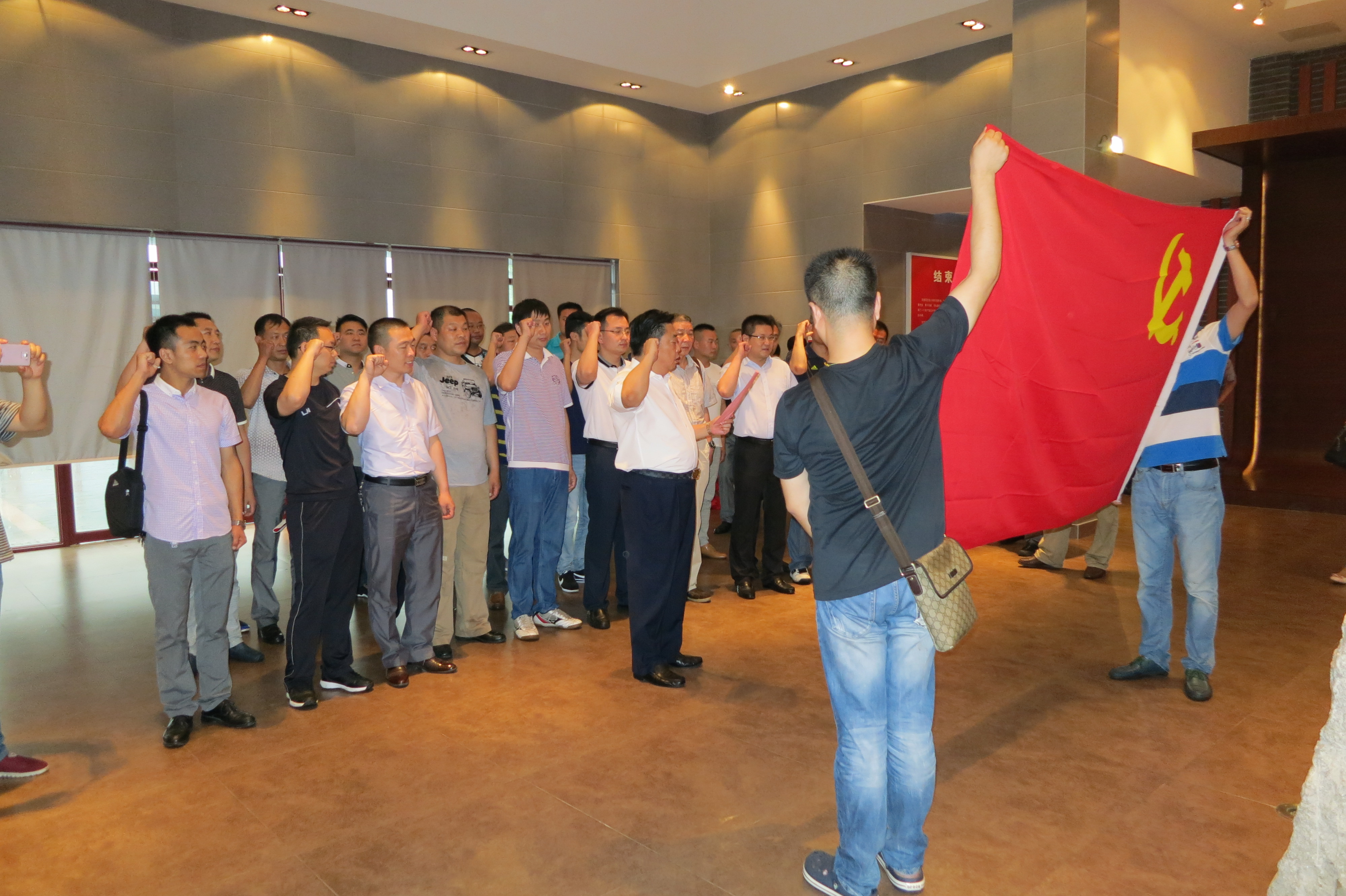 6月27日,集團(tuán)公司黨員領(lǐng)導(dǎo)干部赴鳳陽(yáng)縣小崗村,實(shí)地學(xué)習(xí)沈浩精神,聆聽沈浩先進(jìn)事跡,重溫入黨誓詞,接受黨性教育。