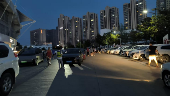 城泊公司針對體育中心周邊車流、人流集中的特點,提前制定保障方案,增派經(jīng)驗豐富的員工負責現(xiàn)場值守?;顒訌陌?/span>7點開始,身著制服的城泊員工在停車場入口、內(nèi)部道路交叉口、車位密集區(qū)等關(guān)鍵點位開展引導(dǎo)工作,成為夜市里一道忙碌而溫暖的風景線。
