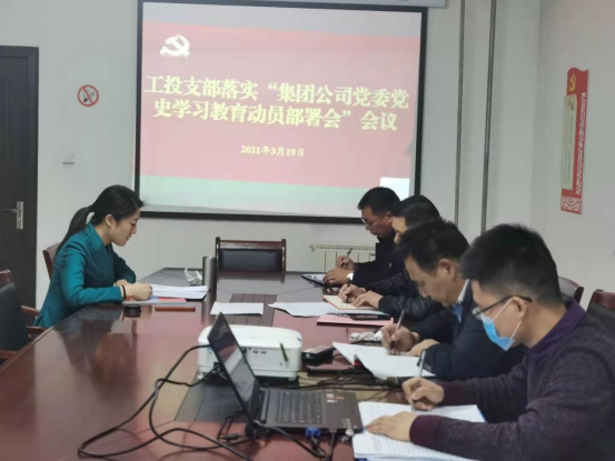 為貫徹落實(shí)集團(tuán)公司黨委黨史學(xué)習(xí)教育動(dòng)員部署大會(huì)的會(huì)議精神,3月19日下午,工投黨支部召開黨史學(xué)習(xí)教育動(dòng)員大會(huì)。