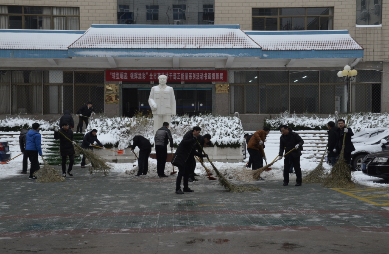 在紀(jì)委書記王獻忠、總經(jīng)理助理朱濤的帶領(lǐng)下,廣大干部職工紛紛拿起鐵鍬、掃帚等工具,不畏嚴寒,你鏟我掃,相互配合,一點點地將積雪和冰層鏟起清除。盡管大家的臉都凍得通紅通紅,但手中的掃雪工具卻不停地揮舞著,忙得渾身是汗,在歡聲笑語中掃出了暢通的大道,受到過往市民的紛紛稱贊。