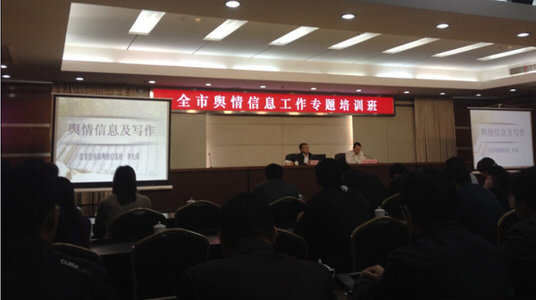 市委宣傳部副部長范向東主持會議,培訓(xùn)班特邀省委宣傳部輿情處副處長李先成授課,李處長從什么是輿情和如何寫好輿情信息兩個方面,結(jié)合多年來總結(jié)的經(jīng)驗,分別介紹了輿情的內(nèi)涵、特點、內(nèi)容、類別和態(tài)勢,列舉了大量生動有趣的事例,同時提出輿情信息寫作要緊緊抓住五個環(huán)節(jié),把握三個要點。
