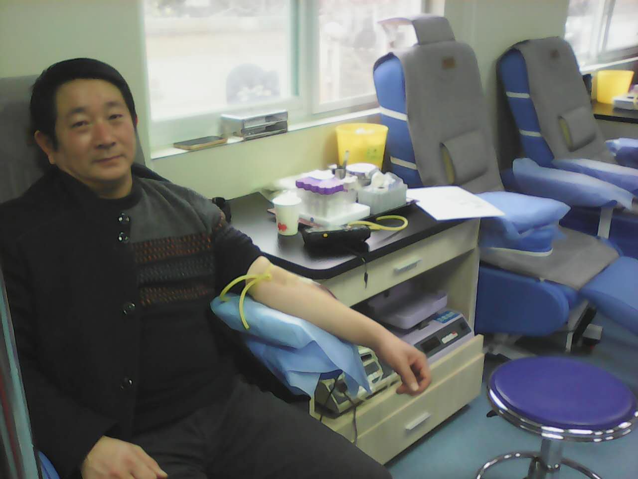1月22日,汽運公交二公司營運部(劉俊峰)、收銀部(李勇)兩名同志在市中心血站無償獻血。據(jù)劉俊峰同志介紹,他最初對獻血完全不了解,還是因為朋友住院急需用血,聽了醫(yī)生的介紹才知道血液這么急缺。于是他就開始加入到無償獻血的隊伍當中,至今他已經(jīng)連續(xù)獻血三千多毫升,幾年來從未間斷,雖然他們獻出的血是有限的,但他們的愛是無限的。