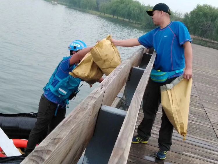上午9時(shí)許,志愿者一行50人冒雨開始撿拾垃圾,鑒于湖面偶有游客灑落的漂浮物,志愿者分為了兩組,一組乘坐皮劃艇清理水面垃圾,一組沿湖邊撿拾岸上垃圾。經(jīng)過兩個(gè)多小時(shí)的奮戰(zhàn),景區(qū)里散落的垃圾被裝袋清運(yùn),南湖在雨中顯得越發(fā)干凈美麗。