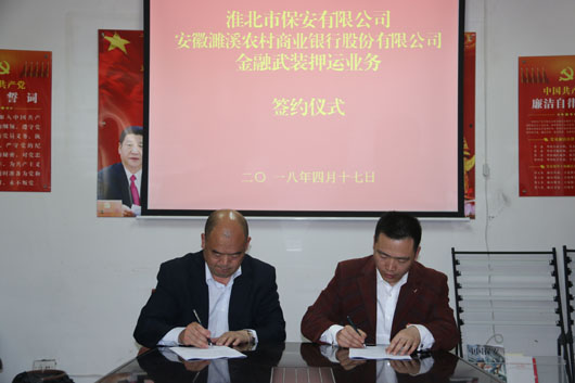 淮北市保安有限公司與安徽濉溪農(nóng)村商業(yè)銀行股份有限公司舉行金融武裝押運(yùn)業(yè)務(wù)簽約儀式