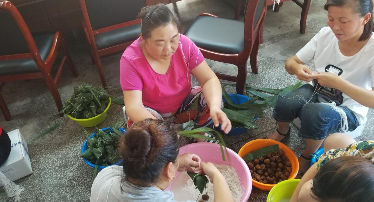 在包粽子過程中,大家互相交流,互相學習,不會包的員工拿著粽葉一步一步的跟著會包的員工學習,雖然包的不太好,但是看著自己親手包好的粽子很是欣喜。