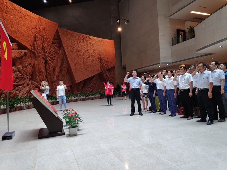 會后,全體黨員同志前往渡江戰(zhàn)役紀(jì)念館進(jìn)行參觀學(xué)習(xí)。在紀(jì)念館一樓大廳,面對鮮紅的黨旗,三個(gè)支部的黨員領(lǐng)導(dǎo)干部重溫入黨誓詞,進(jìn)一步堅(jiān)定了黨員的理想信念,增強(qiáng)了黨員的責(zé)任感和使命感。
