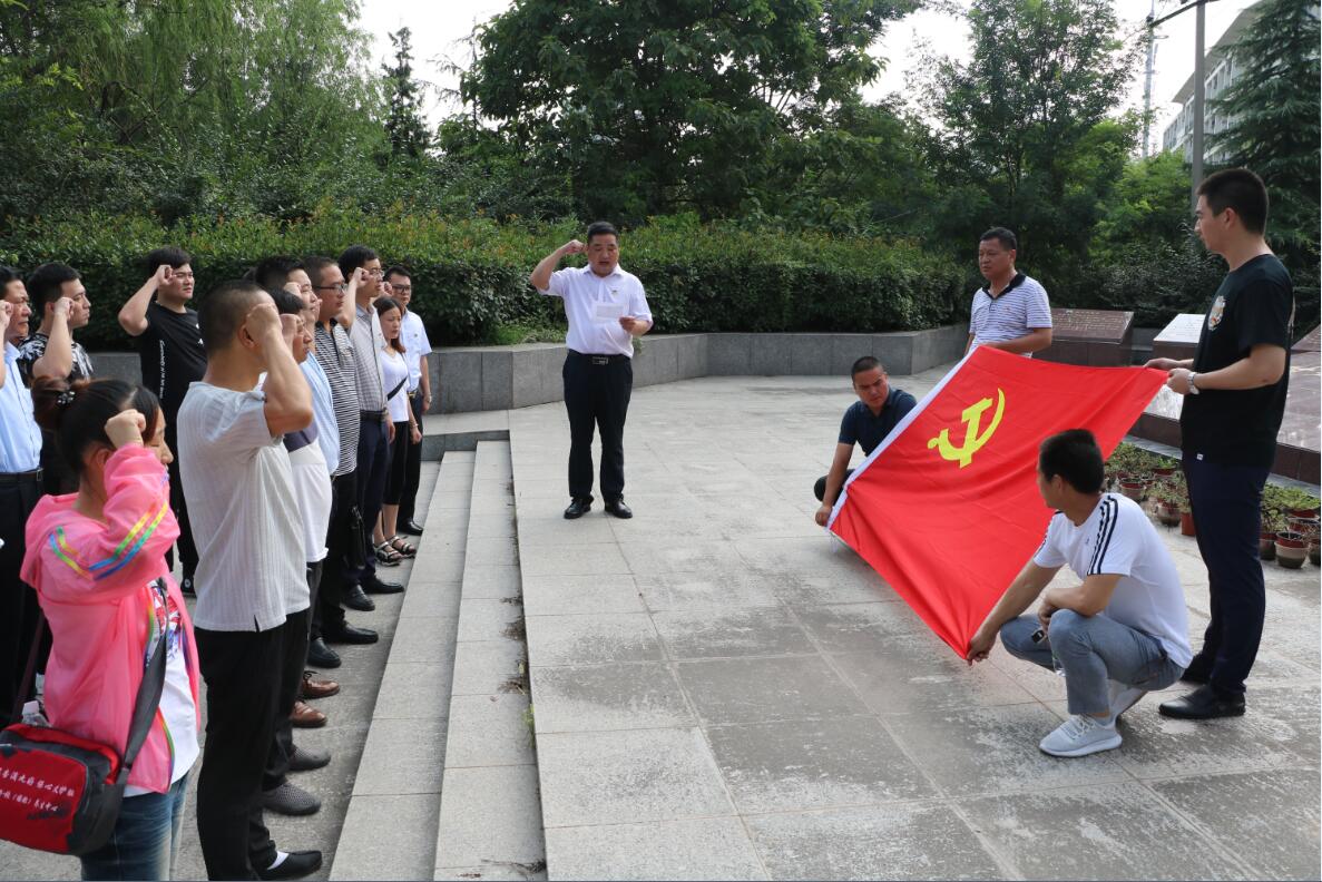 參加活動(dòng)的全體黨員在烈士紀(jì)念碑前,向烈士紀(jì)念碑三鞠躬,深切緬懷烈士們的豐功偉績(jī),深情瞻仰烈士紀(jì)念碑,向革命烈士致以深深的敬意。全體人員在革命烈士紀(jì)念碑前列隊(duì)向黨旗莊嚴(yán)宣誓,重溫入黨誓詞。