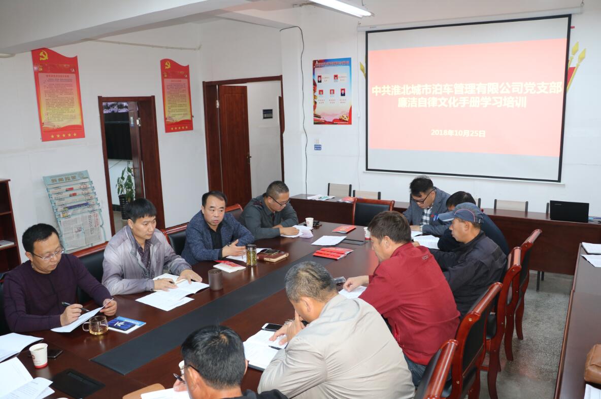 城泊公司黨支部組織學(xué)習(xí)《淮北城市泊車管理有限公司廉潔自律文化手冊(cè)》