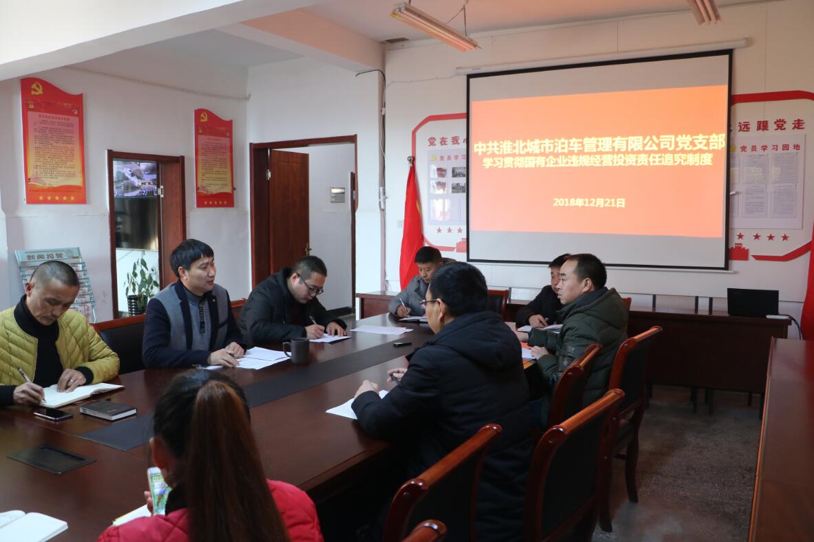 2018年12月21日,城泊公司組織黨員干部認(rèn)真學(xué)習(xí)了《國務(wù)院辦公廳關(guān)于建立國有企業(yè)違規(guī)經(jīng)營投資責(zé)任追究制度的意見》。