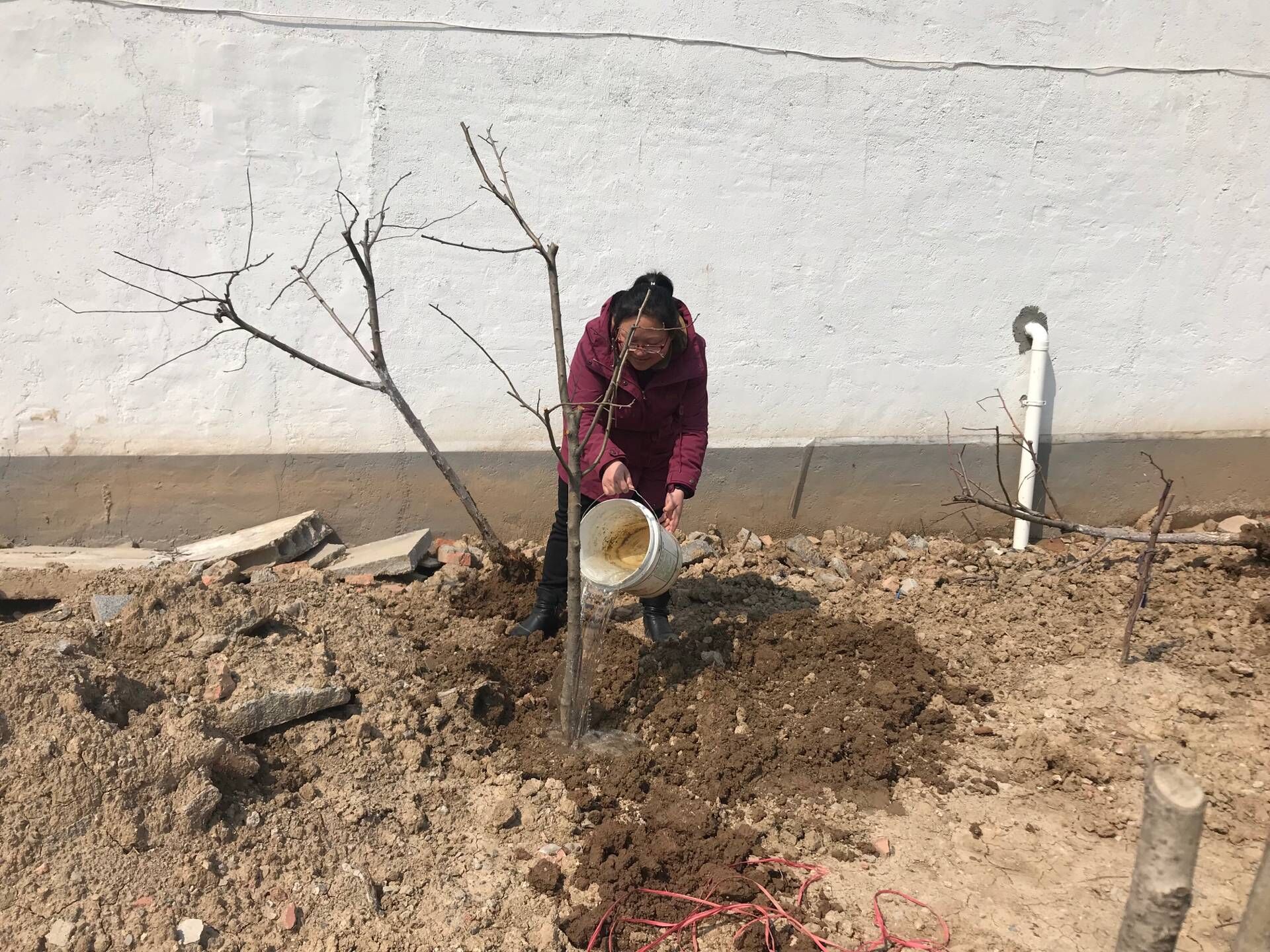 生態(tài)景觀公司扶貧小組一行4人,3月25日驅(qū)車帶著5棵蘋果樹苗來到火神廟村呂秀英老人家進行樹苗補種。大家分工植樹,有的挖坑,有的扶樹,有的培土,有的澆水,每道工序有條不紊,一片繁忙。扶貧小組成員不辭辛苦,以實際行動投身到扶貧工作中去,為貧困戶獻出一份愛心,點燃一盞希望。助力貧困戶加快脫貧致富步伐,共同邁入全面小康。