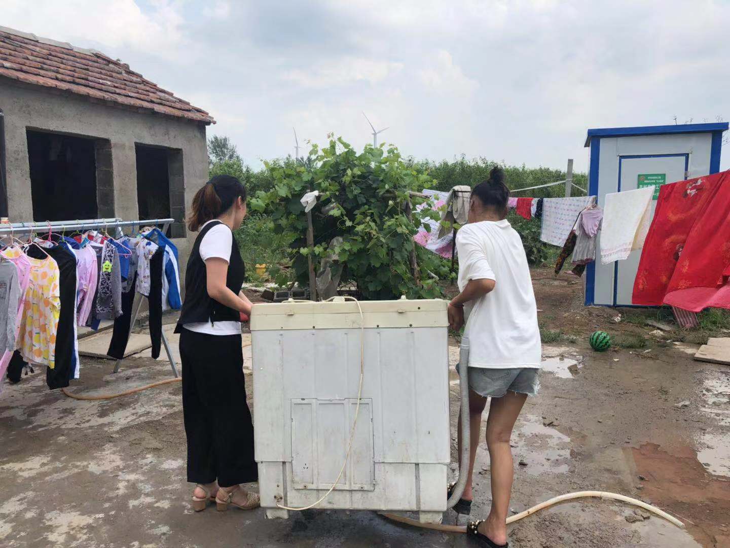 在貧困戶家中,商貿(mào)公司幫扶小組成員幫助他們整理家中物品,宣講國家扶貧政策并告知貧困戶即將為她送去50只雞苗的好消息,臨行前還叮囑高溫防暑,近期雷雨天氣較多,注意安全。