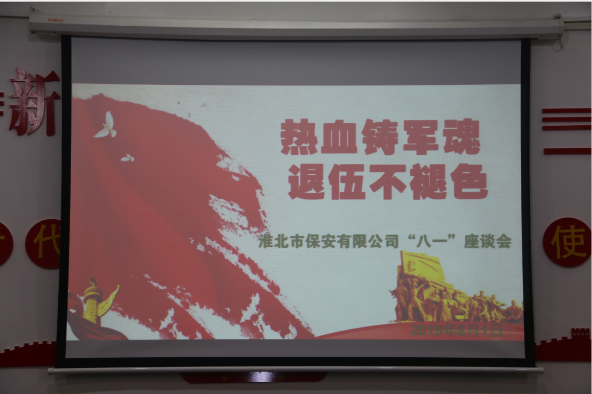 “八一”建軍節(jié)來(lái)臨,為慶祝中國(guó)人民解放軍建軍92周年,做好退役軍人慰問(wèn)和組織關(guān)懷工作,淮北市保安有限公司于8月1日上午,召開以“熱血鑄軍魂·退伍不褪色 ”為主題的復(fù)員退伍軍人座談會(huì)。邀請(qǐng)公司退役軍人代表參加了座談。