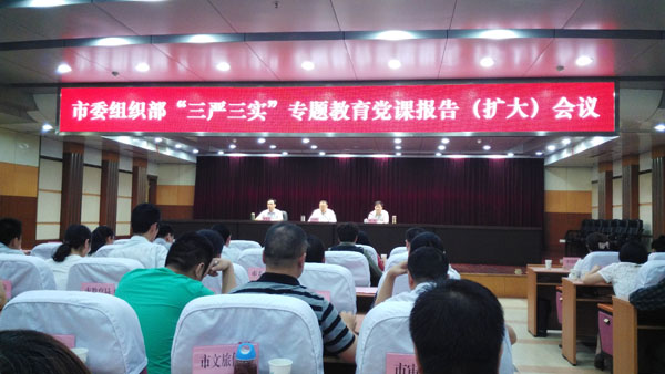 按照全市“三嚴(yán)三實”專題教育部署安排,結(jié)合“弘揚沈浩精神、建設(shè)模范部門”主題實踐活動,5月20日下午,市委組織部召開“三嚴(yán)三實”專題教育黨課報告(擴(kuò)大)會議。市委常委、市委組織部部長、市政府常務(wù)副市長沈光繼出席會議,并為全市組工干部上了一堂生動的黨課。