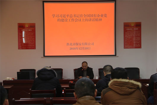 2018年12月18日,淮北市保安有限公司組織黨員干部在公司黨支部書記的帶領(lǐng)下,認(rèn)真學(xué)習(xí)了中共中央總書記、國(guó)家主席、中央軍委主席習(xí)近平全國(guó)國(guó)有企業(yè)黨的建設(shè)工作會(huì)議的講話精神。