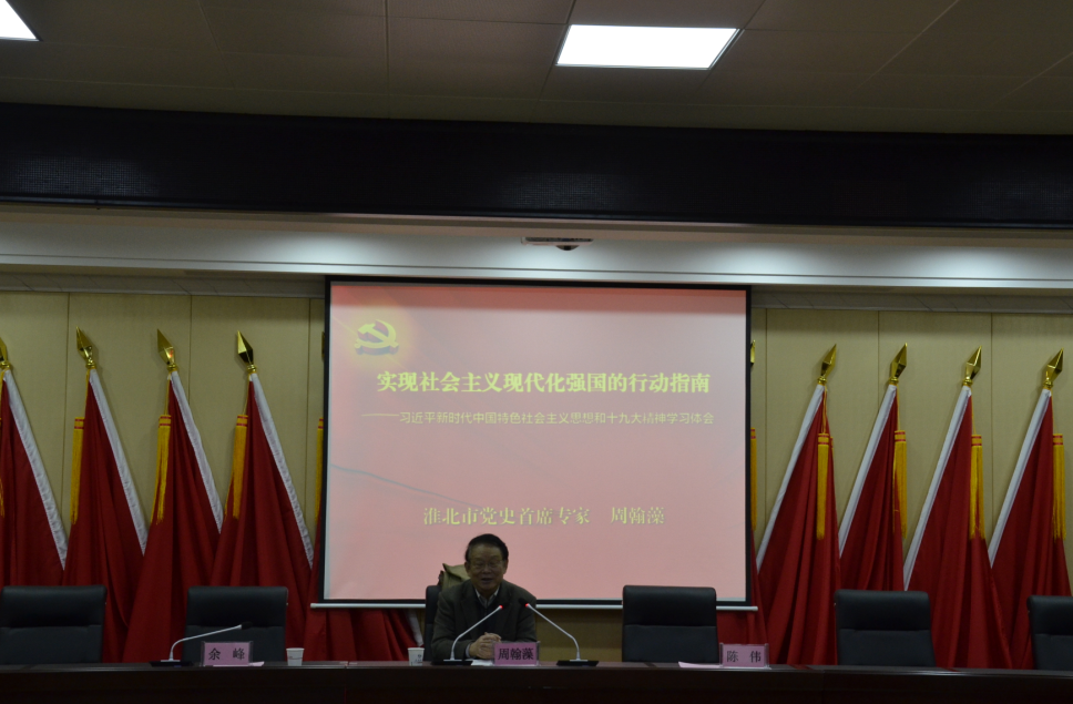 12月27日,市建投集團在五樓會議室舉行習近平新時代中國特色社會主義思想和黨的十九大精神培訓班,邀請淮北市黨史專家周翰藻同志授課,集團公司黨員領導干部及業(yè)務骨干120余人參加培訓。