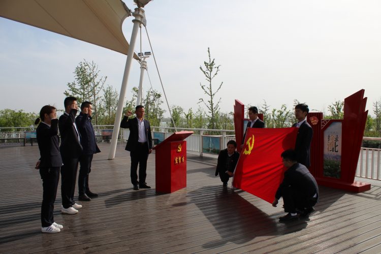 427日,融通黨支部組織黨員及支部新發(fā)展的黨員前往綠金湖圓夢(mèng)島舉行了莊嚴(yán)而隆重的黨員宣誓活動(dòng)。在融通黨支部副書(shū)記馬振林的帶領(lǐng)下,支部3名新發(fā)展黨員面對(duì)黨旗莊嚴(yán)宣誓,短短一百多字的誓言是他們對(duì)黨的承諾,是他們一生銘記的宣言。